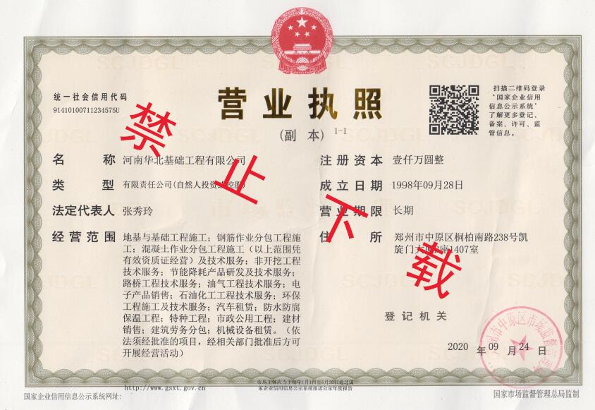 河南華北基礎工程有限公司成立于1998年,由華北地勘工程公司改制而來。公司下設地基基礎公司、定向技術服務公司、新產品研發中心三個單位。設立綜合管理部、生產運行部、安全環保部、經營財務部、商務合約部五個職能部門。